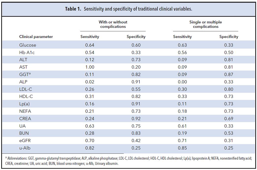 该研究入组了62例2型糖尿病病人,采用5hmC-Seal技术对血浆cfDNA中表观遗传标志物5hmC的分布情况进行检测,分析5hmC标志物与2型糖尿病血管并发症发生发展的相关性。结果表明5hmC标志物的变化与T2D合并大血管/微血管事件具有相关性,主要涉及一些与血管生物学和糖尿病(包括胰岛素耐受和炎症反应)相关的基因和信号通路。该研究建立的16个基因-5hmC标志物组合检测可以准确区分有并发症和无并发症的2型糖尿病病人[实验组:AUC=0.85;95% CI,0.73-0.96],明显优于传统临床变量例如白蛋白尿。除此之外,还建立了13个基因-5hmC标志物组合检测,可以进一步区分T2D合并单一并发症和多种并发症[实验组:AUC=0.84;95% CI,0.68-0.99],同样明显优于其他传统临床变量。该研究得出结论,5hmC标志物反映了T2D病人大血管/微血管并发症发生过程中的表观遗传变化,因而5hmC-Seal检测技术在监测糖尿病血管并发症发生和进展方面具有良好的临床应用前景。